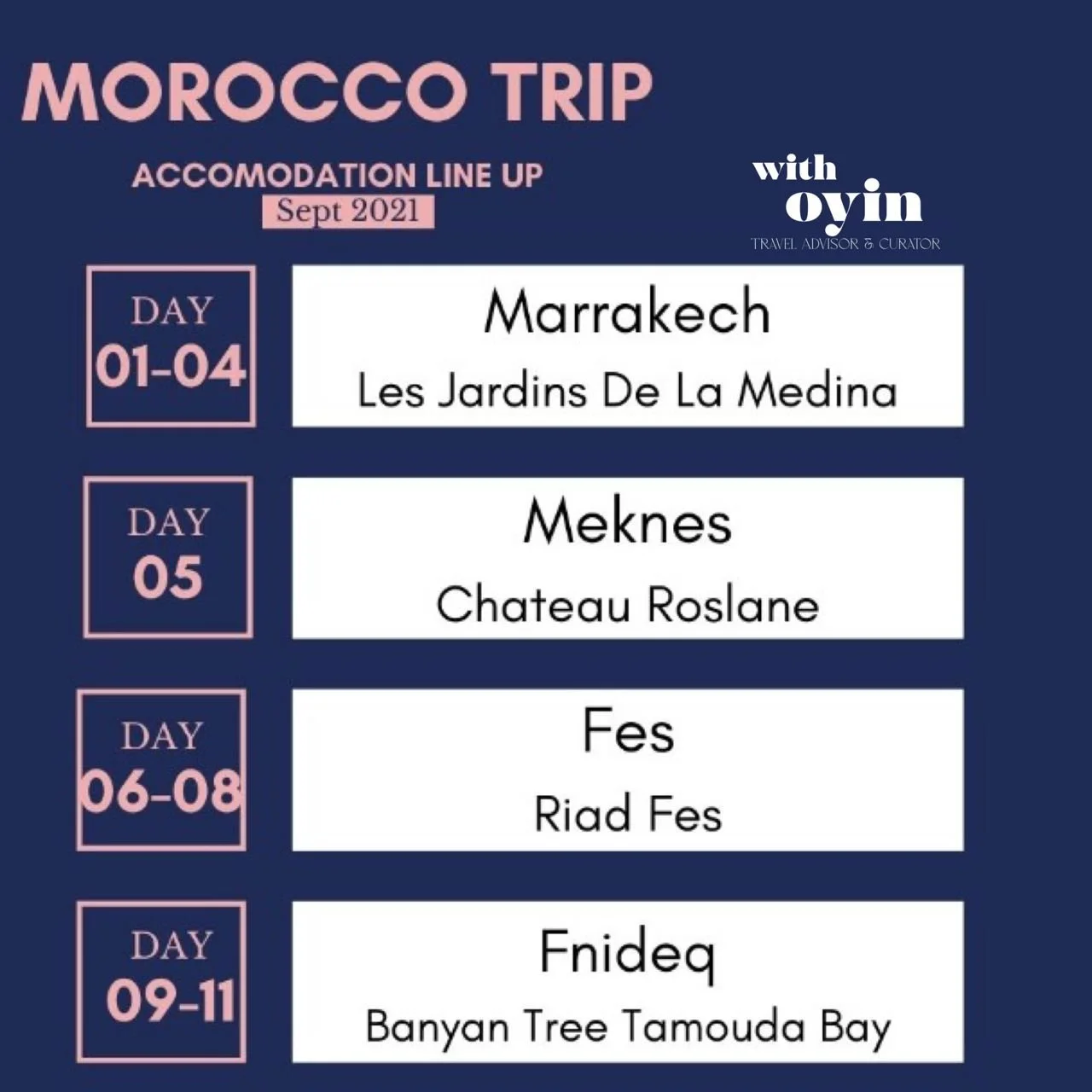 This time last month, I was soaking the sun, sipping on freshly squeezed orange juice while listening to Wizkid x Buju's Mood in Marrakech, Morocco. I was determined to curate an unforgettable birthday trip for my fiance - which was indeed a huge success! We started in Marrakech, then made a brief stop in Meknes, then to Fes, then to Fnideq, our final stop. About a 550 miles trip.